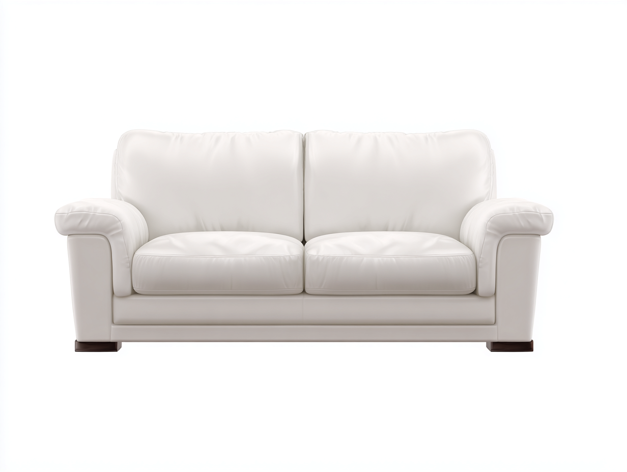 Divano a due posti - Pelle-Legno - 182x96x82 cm - Bianco - Design classico